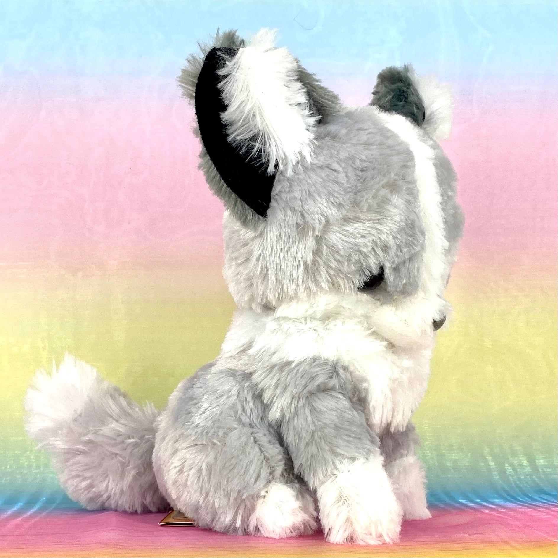 An adorable desert or fennec fox from AMUSE. Super soft grey and white fur with lovely dark grey coloured ears and white socks. The long fur in the ears makes them so cute.
