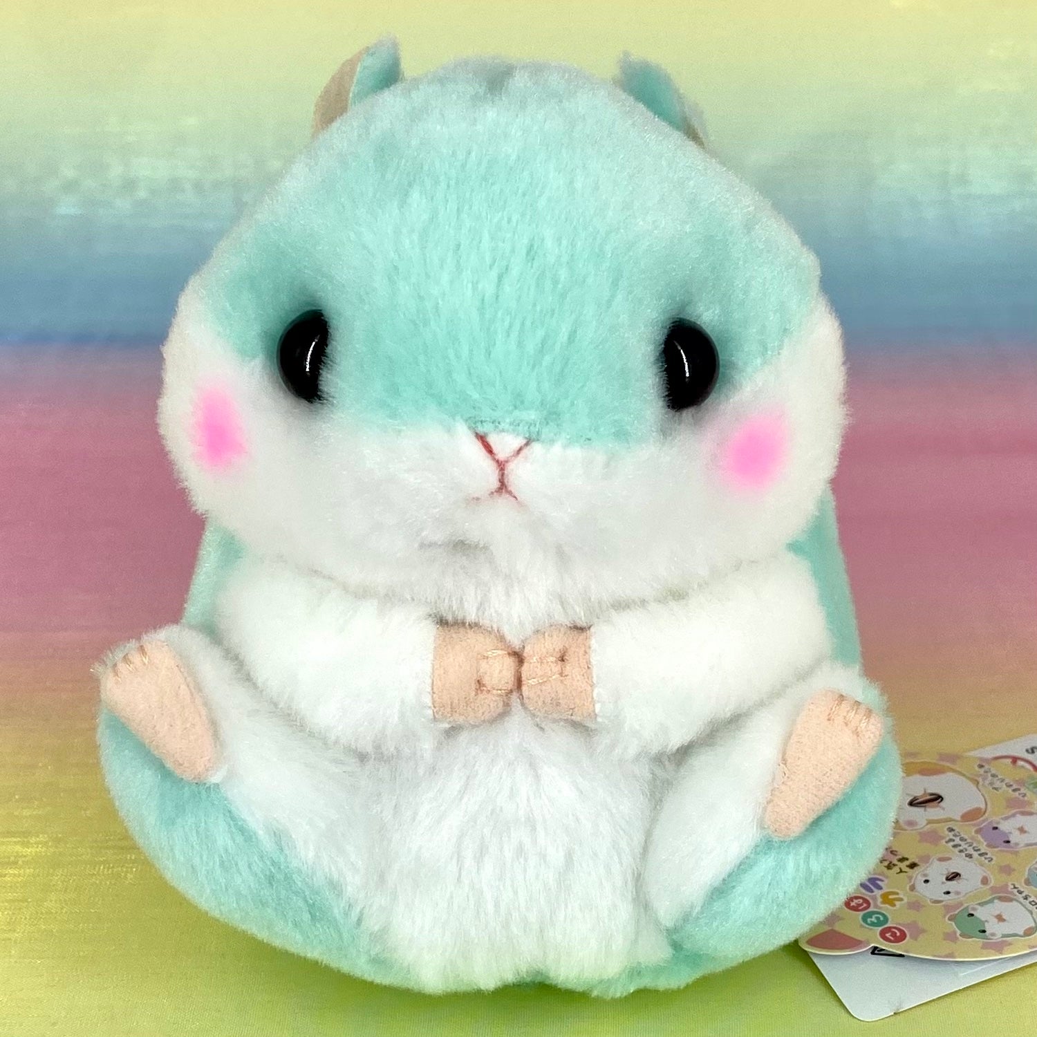 Coron is the cute round hamster with chubby cheeks. They are made from beautiful soft turquoise & white fur with rosy cheeks. Their hands and feet are super adorable along with their charming faces.