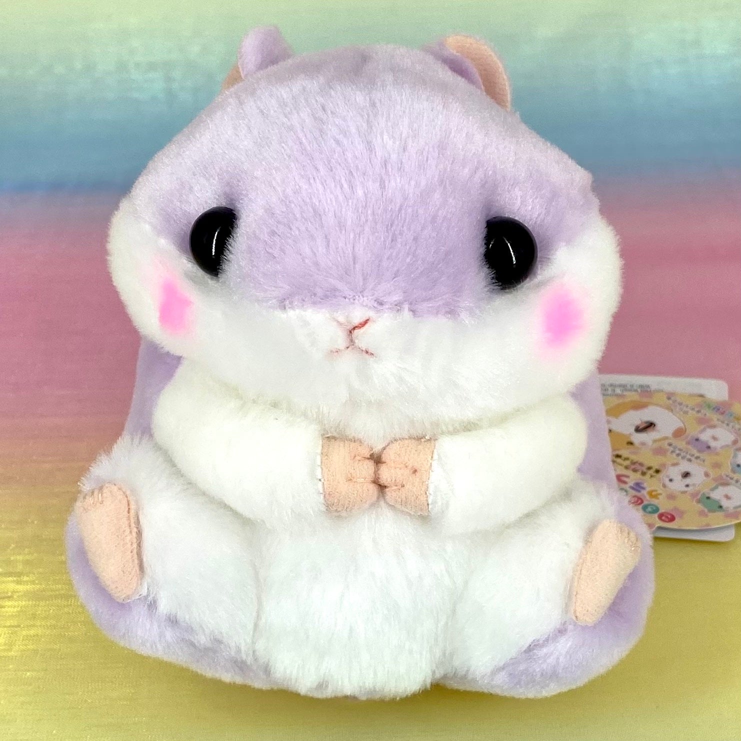 Coron is the cute round hamster with chubby cheeks. They are made from beautiful soft lilac & white fur with rosy cheeks. Their hands and feet are super adorable along with their charming faces.