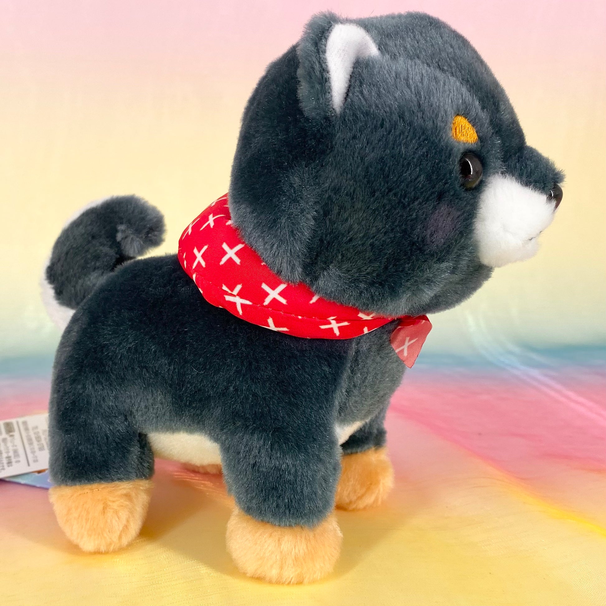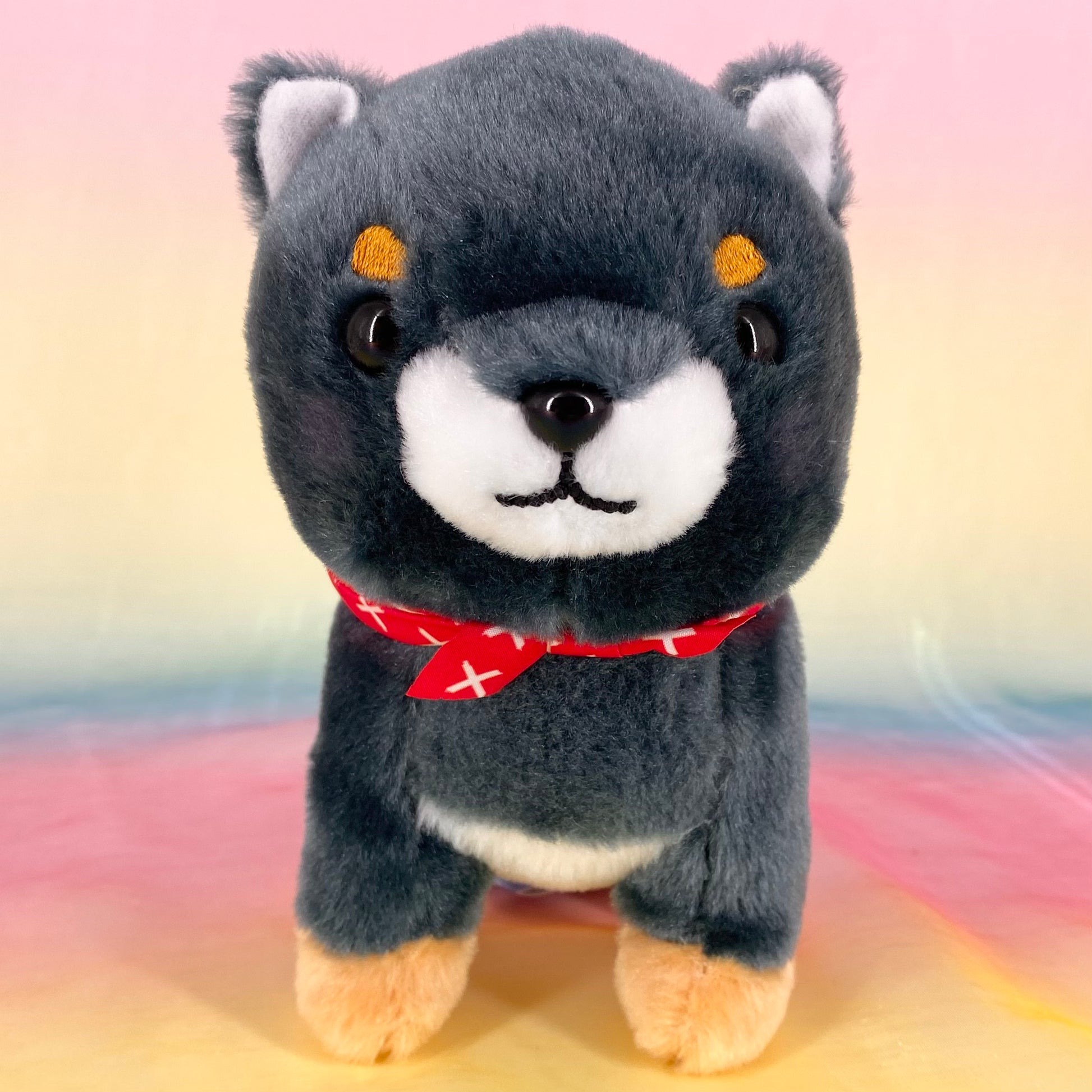Mameshiba and friends are here wearing snazzy kneckers. Super soft blue/grey, cinnamon and white fur, rosy pink cheeks, a patterned red knecker and the curly tail make this such a gorgeous plushie for all ages.