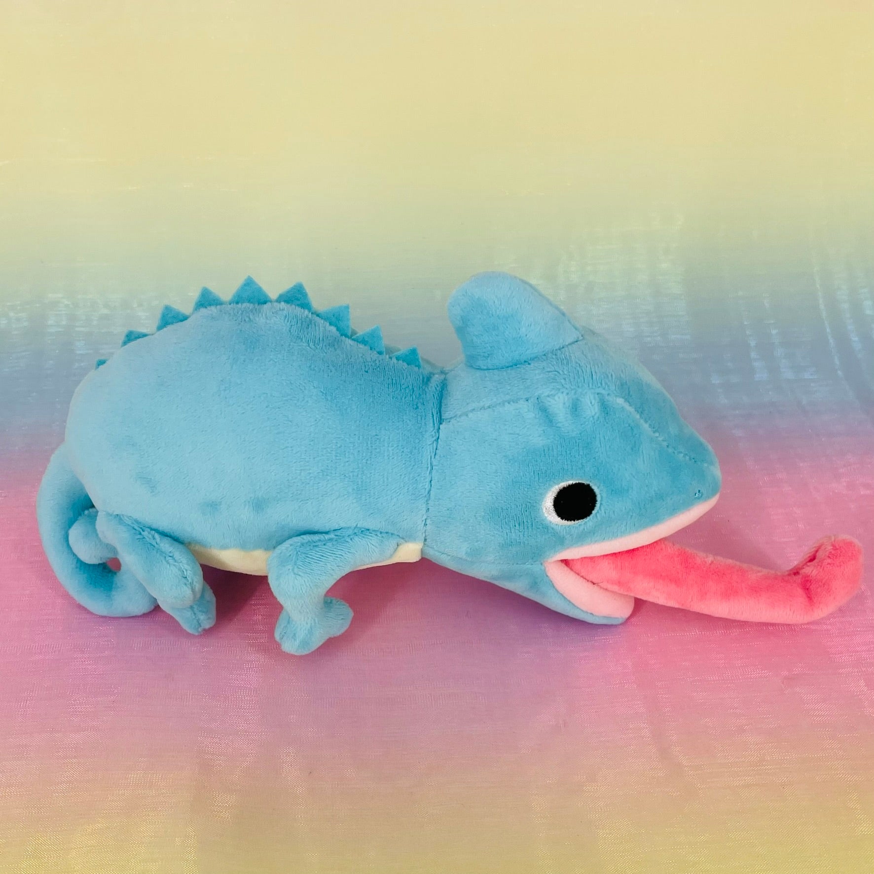 The chameleon is famous for its colour changing abilities and tongues that shoot out to catch their dinner. This plush has short fur and are silky to the touch. The tongue and tail get longer and shorter when you pull them.