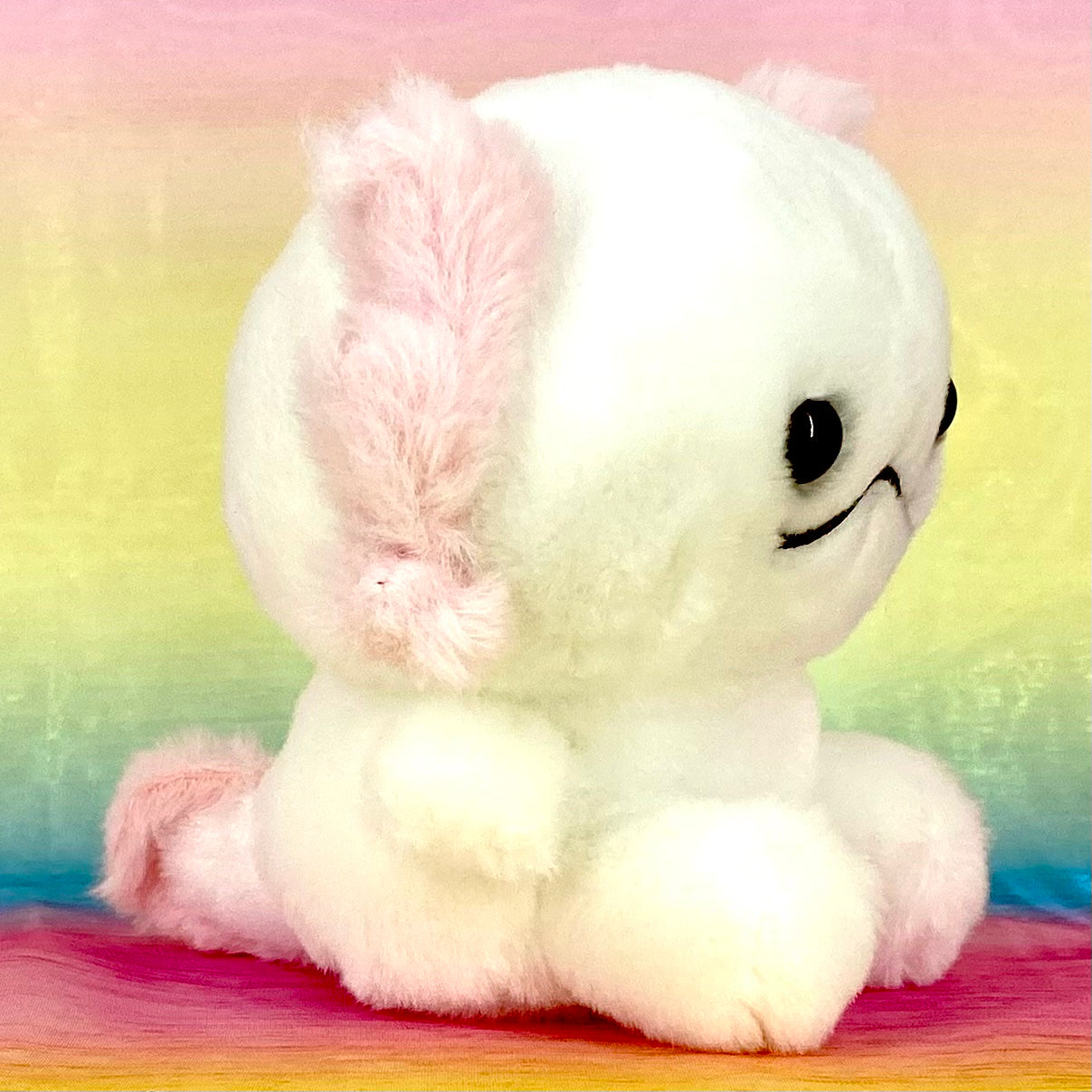 Meet this brand new plush design, a sitting Axolotl. These little creatures are hugely popular right now and this plush version is so adorable. Super soft white fur body and a charming tail with pink gills.